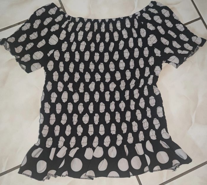 Blouse noire et gris à pois Froncée et volantée Bon état Taille unique 2€ #blousefemme #blouseapois #blouse