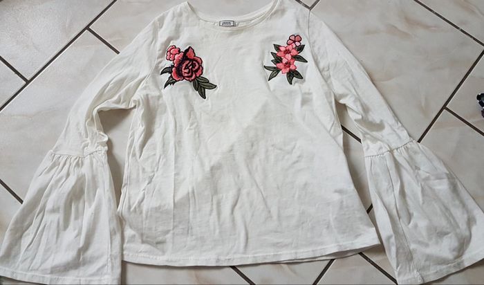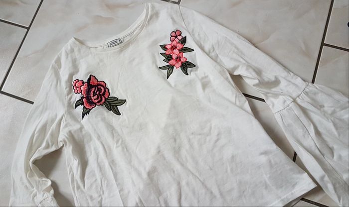 Tshirt Manches longues manches évasées. Fleurs sur le haut. Tres bon état. 3€