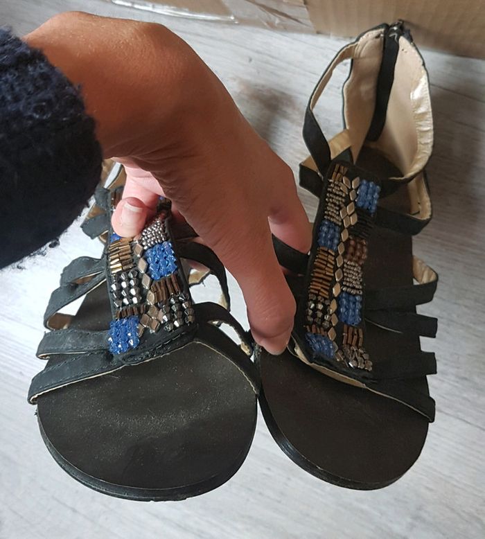 Jolies sandales petits talons. Motif perles. Tres bon état Pointure 37