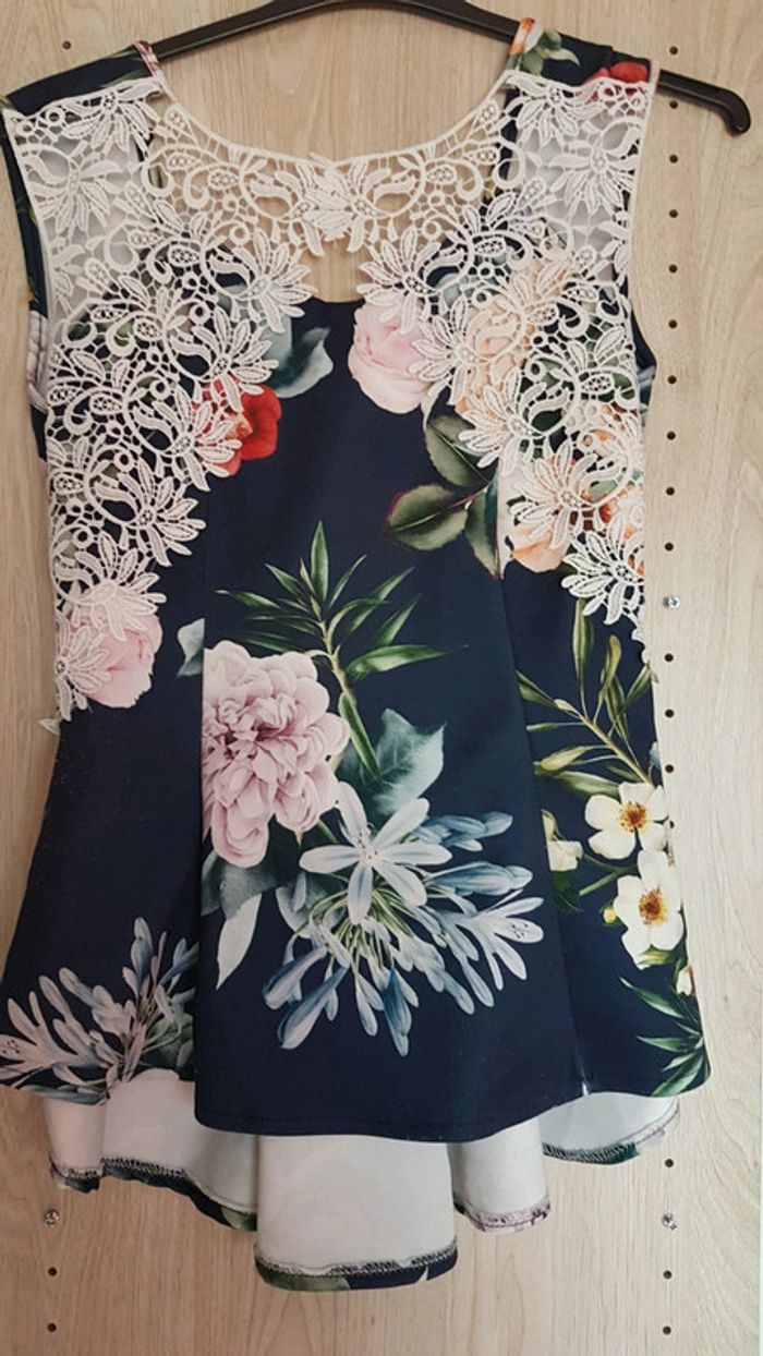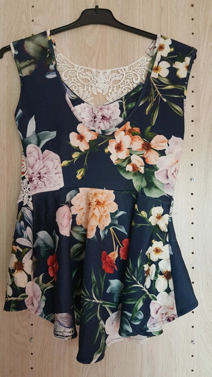 Joli débardeur avec fleurs . Taille 2 mais plutôt taille unique. Bon état. Boulochés sur le devant.