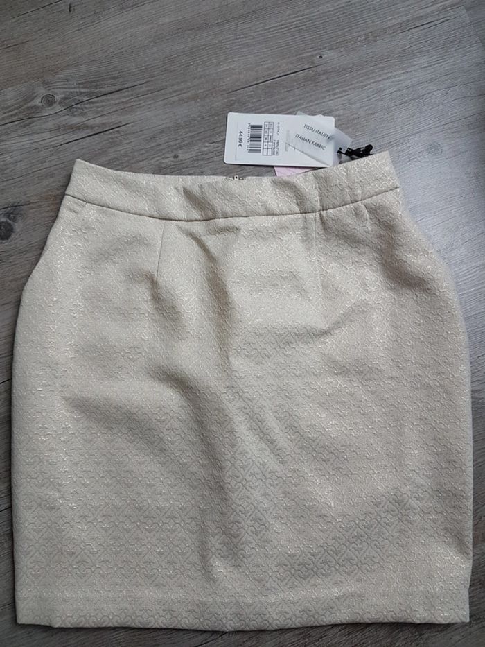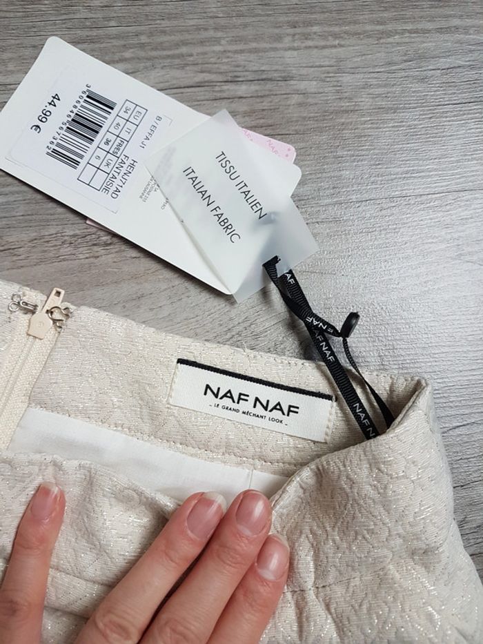 Tres jolie jupe beige/crème effet brillant. Neuve encore étiquetée. Taille 36. Marque Naf Naf. 20€