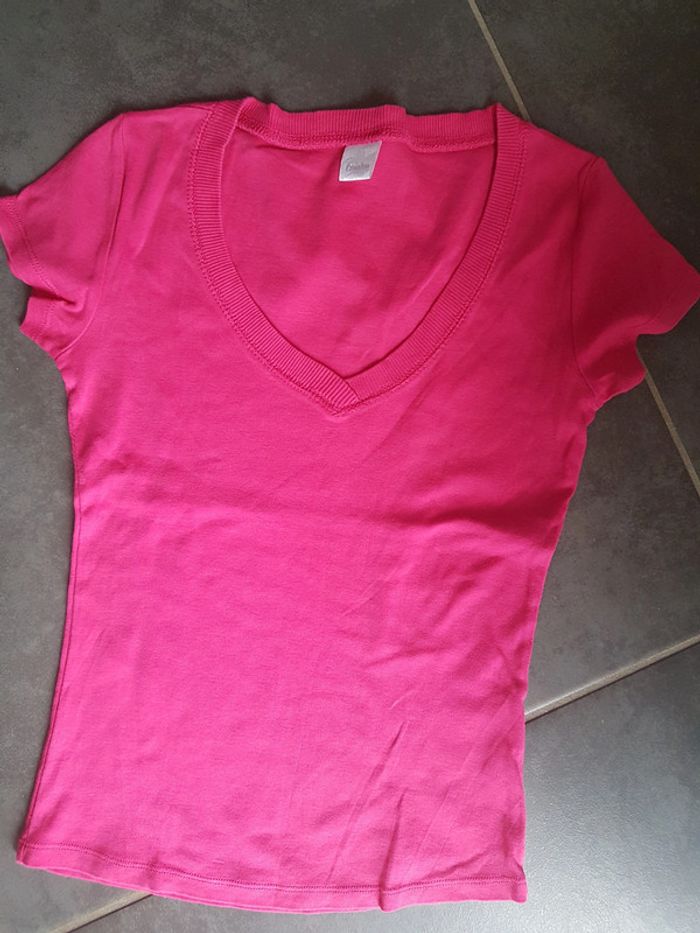 Joli tshirt col V marque camaieu. Colori fushia. Taille 1. Tres bon état