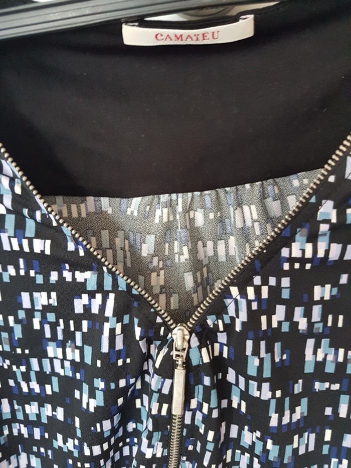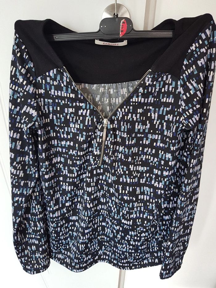 Joli tshirt manches longues noir et motif mosaique. Marque camaieu Taille 1