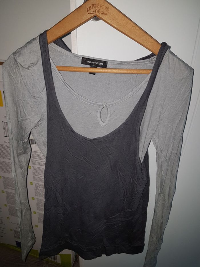 Joli tshirt manches longues gris clair et foncé. Marque Jenyfer taille M. Tres bon état