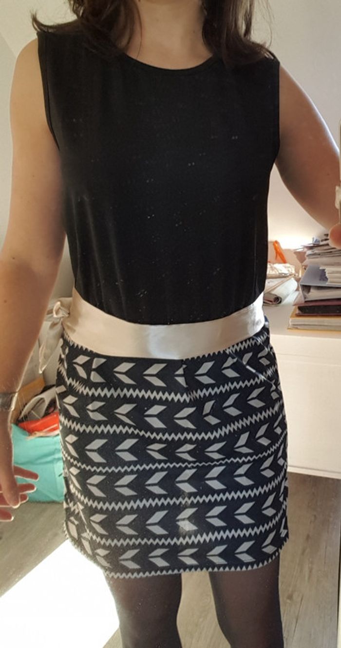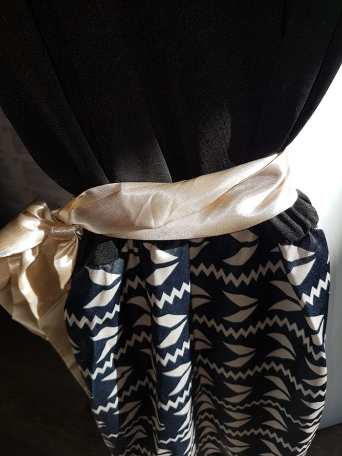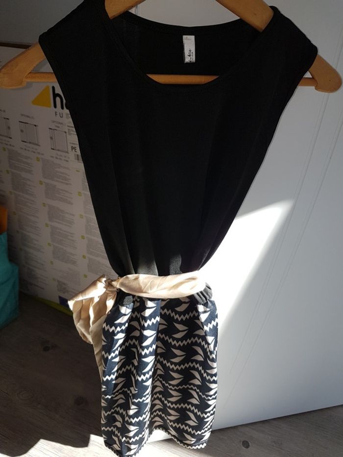Jolie robe neuve couleur noir et beige avec ceinture ruban. Neuve juste lavee. Taille M