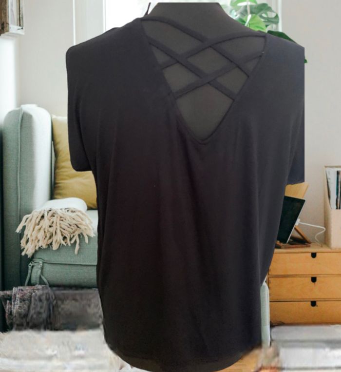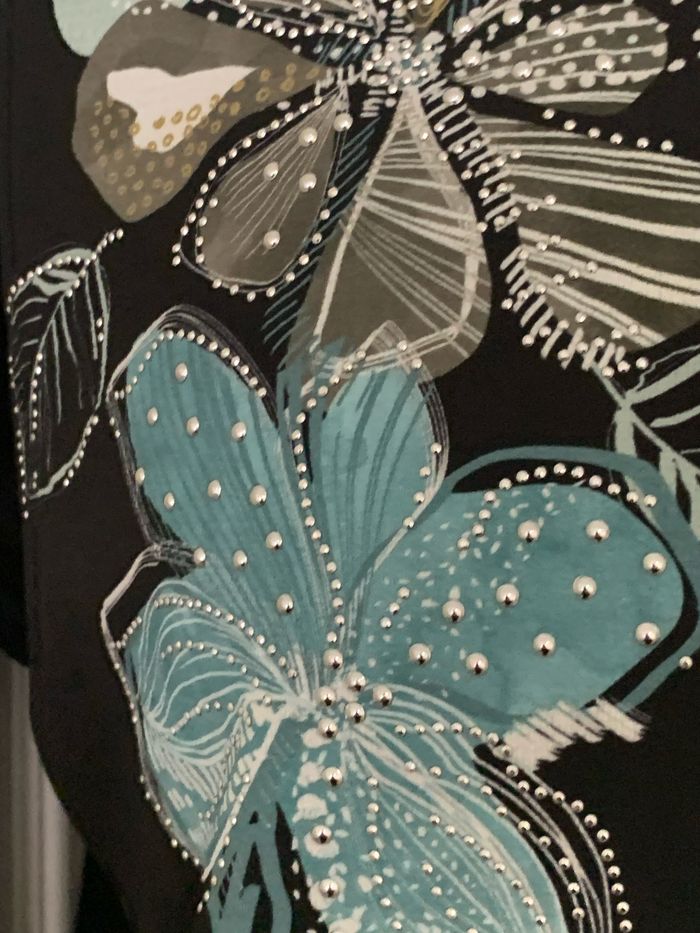 Magnifique blouse haut manches courtes , avec clous strass , la taille 3 correspond à 42/44 Aisselles à aisselles 58 cm