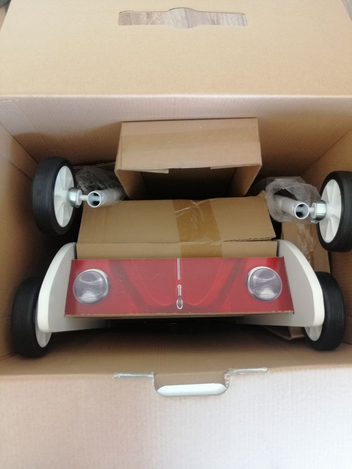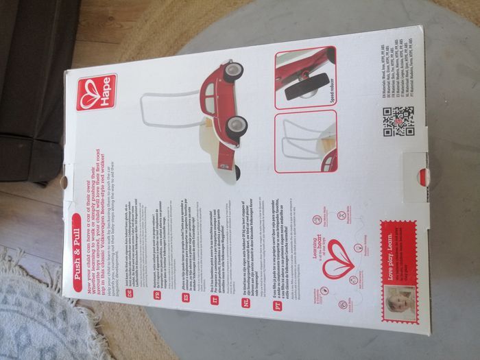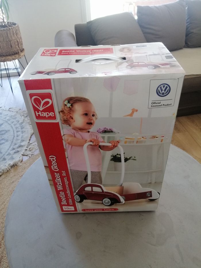 Trotteur en bois et métal Coccinelle rouge Hape pour bébé. Neuf, jamais utilisé. Présente 2 positions réglables pour la poignée en métal. Ce chariot d'apprentissage est équipé d'un réducteur de vitesse pour régler la résistance de la roue et sécuriser son utilisation par les tout-petits. Convient aux enfants dès 10 mois. N'hésitez pas à regarder mes autres annonces, réductions possible si plusieurs articles achetés.