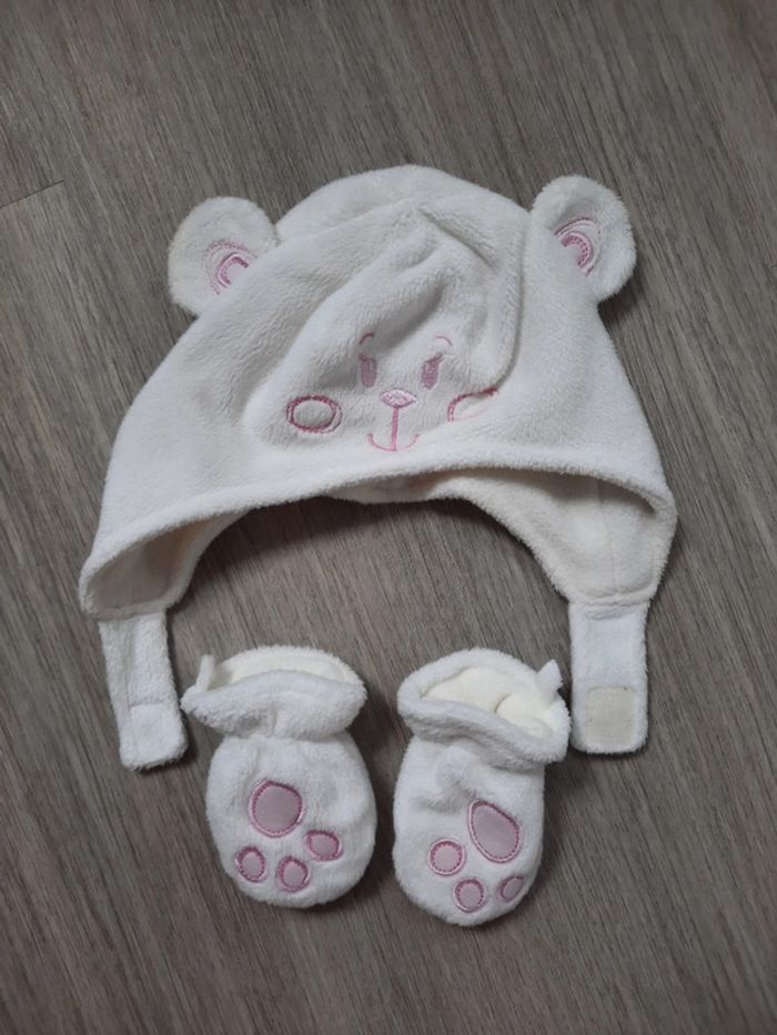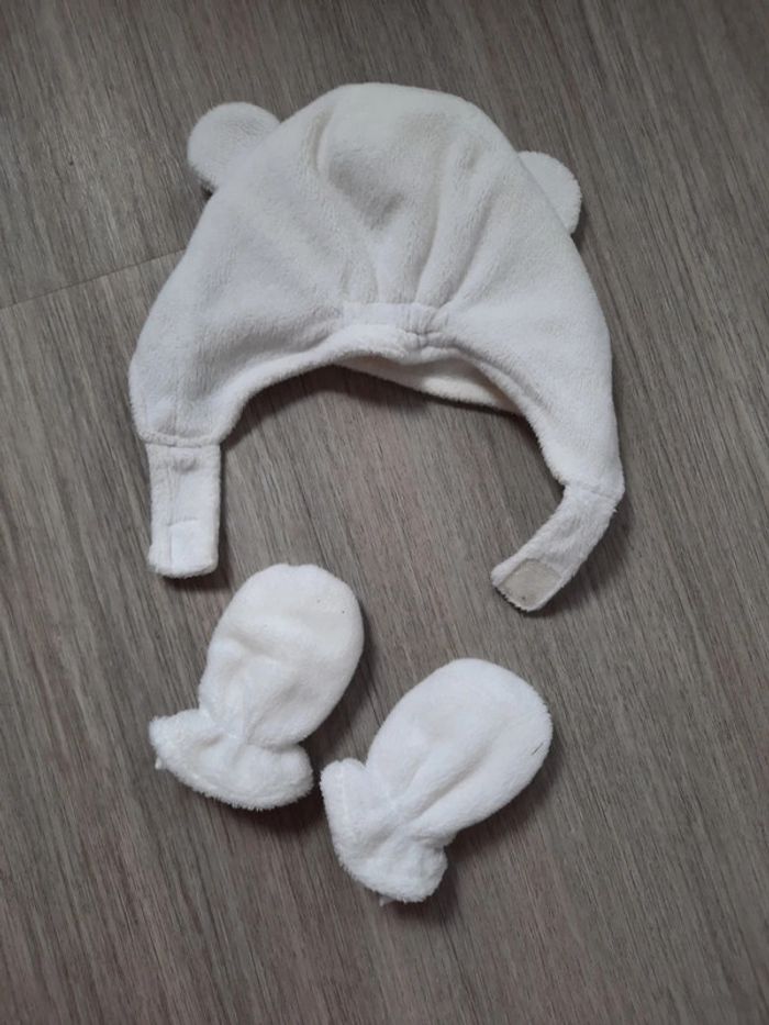 Ensemble bébé bonnet + moufles - photo numéro 1