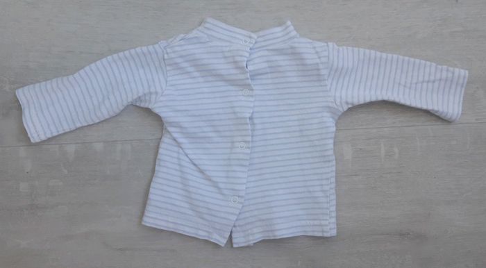 #1moisgarçon_anivir76 Tee-shirt manches longues Blanc à rayures bleues claires Très bon état Pressions arrières