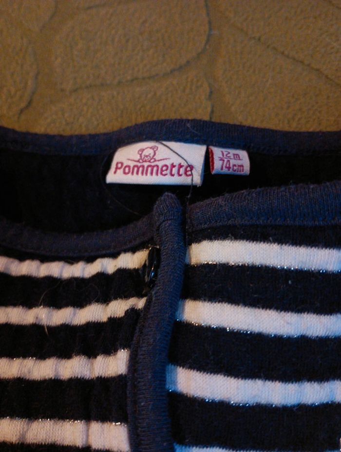 Gilet style marinière, Chaud et confortable, 12 mois, 74 cm