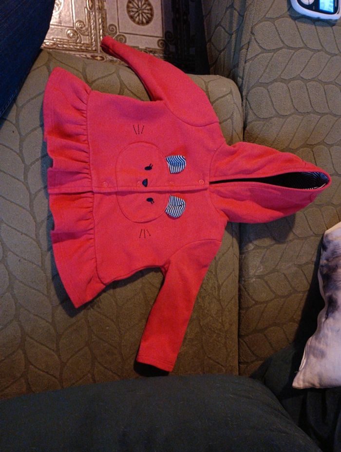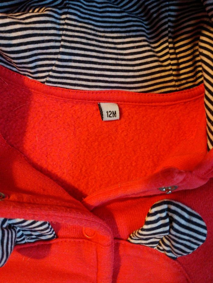 Gilet rouge avec petite souris dessus, Intérieur polaire, 12 mois.