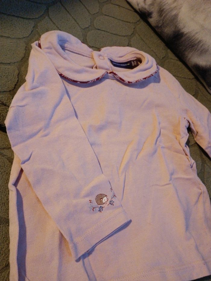 Tee-shirt manches longues, Taille 12 mois, 74 cm, Col claudine