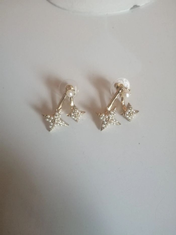 🌸#Dormeuses #étoilées #perles blanches  "vintage" 🌸 - photo numéro 2