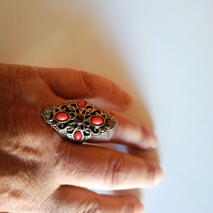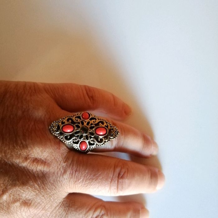 🌸Jolie bague vintage avec perles rouges taille 47 🌸 - photo numéro 2