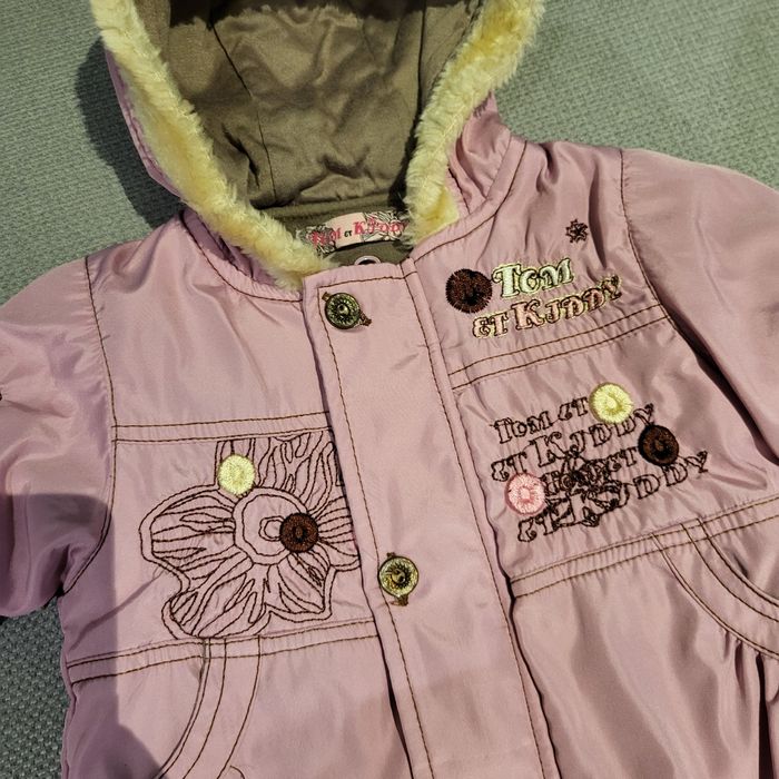 Beau manteau imperméable et doublé donc bien chaud. Fermeture boutons et fermeture éclair devant. Vraie petites poches côté. Capuche avec fausse fourrure.