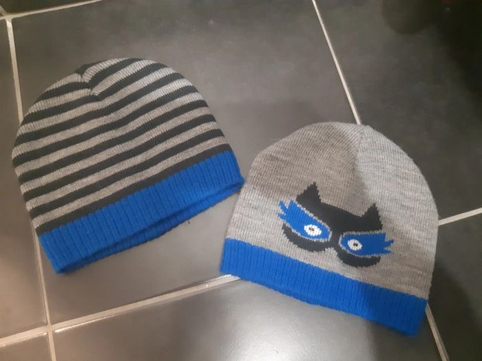 Lot de 2 bonnets gris et bleu Tu indiquée mais taille 4/5ans