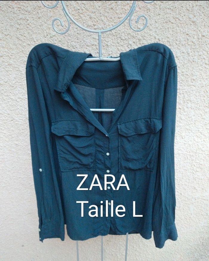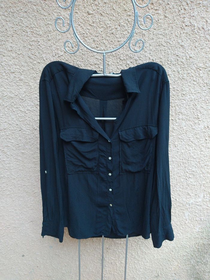 Chemise noire ZARA taille L Manches longues pouvant être retroussées et boutonnées