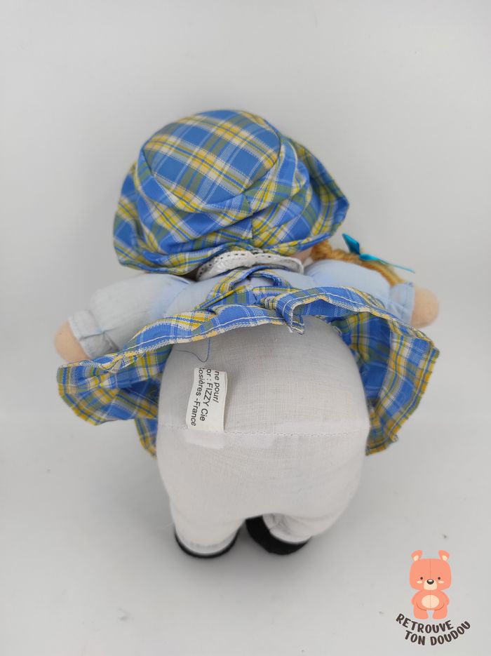Poupée de chiffon blonde avec robe bleue Fizzy Cie 📏 Dimension : 20 cm environ assise ✨ Occasion. Très bon état. 💦 Non lavé 🧼 👀 Vous achetez le doudou que vous voyez sur les photos.