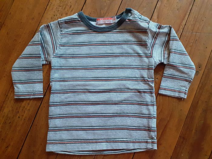 Joli lot de 2 t-shirts manches longues Taille : 3 mois 100% Coton Couleur : Turquoise et marron/beige rayé Marques : Mini Gang et Sports Babies Etat impeccable