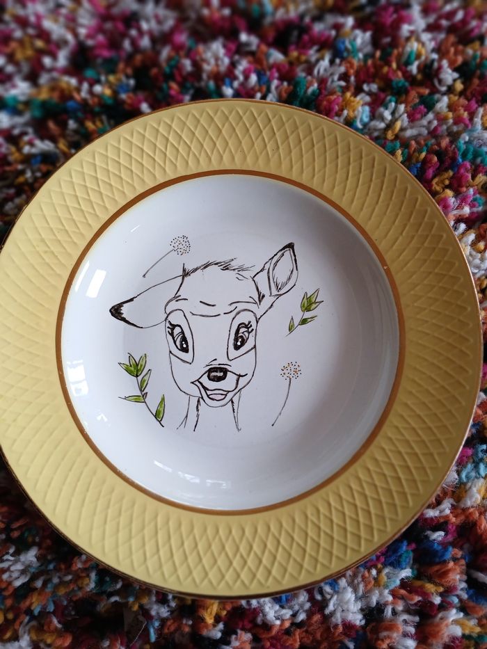 Belle assiette décorative A accrocher comme un tableau dans la chambre de vos doux bambins Vendue avec l'attache murale bien entendu Pièce unique