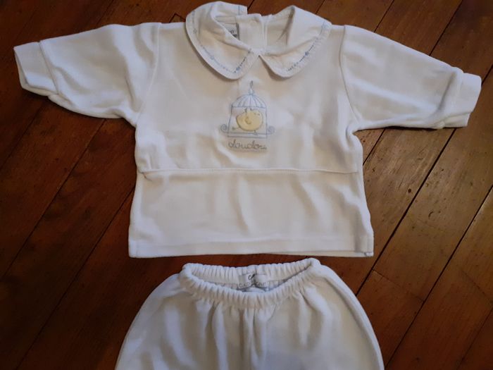 Bel ensemble sweat et pantalon Taille : 3 mois Coloris : Blanc Composition : 80% Coton et 20% Polyester Marque : Claude Saint Genet Etat impeccable