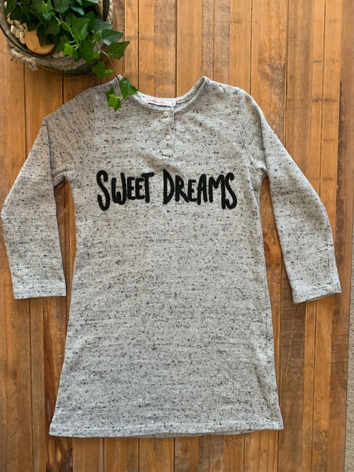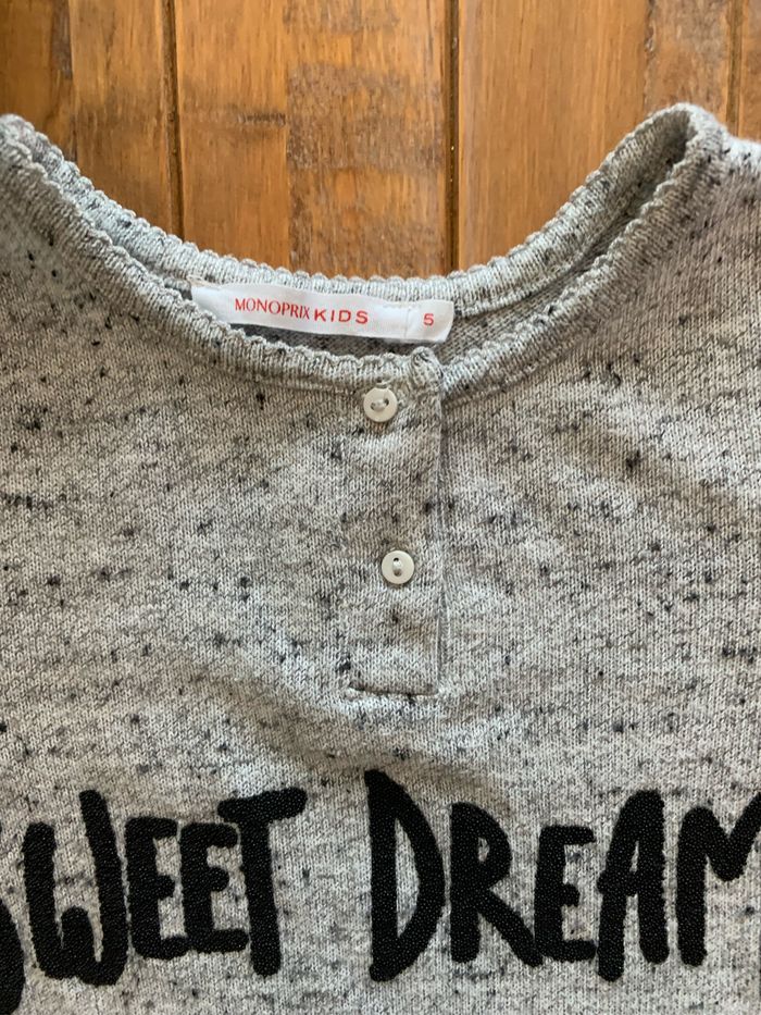 Jolie robe gris chinée Monoprix Kids Taille 5 ans Inscriptions Sweet Dreams noir perles #monoprixkids #robe5ans