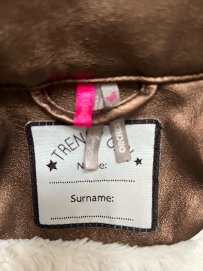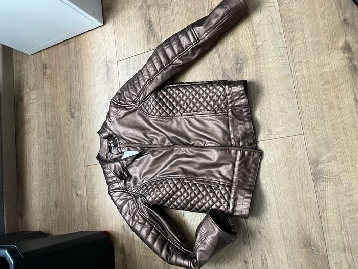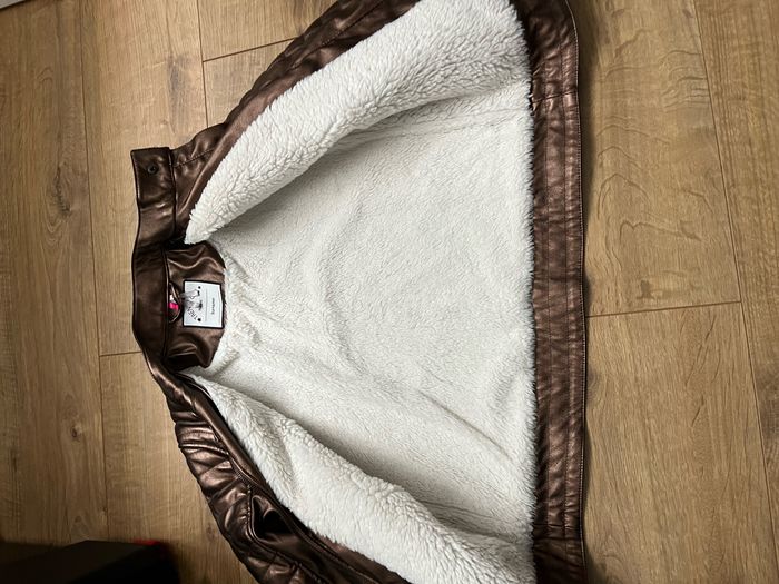 Jolie petite veste en similicuir, intérieur, polaire, couleur marron métallisé