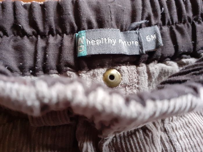 Joli pantalon à la taille élastiquée Deux poches latérales sur les jambes Marque : Healthy Nature Taille : 6 mois Aspect velours côtelé Composition : 100% Coton Coloris : Beige Etat impeccable