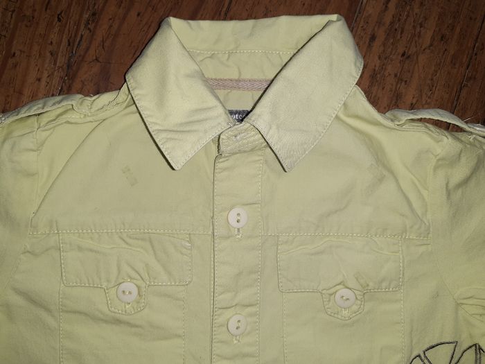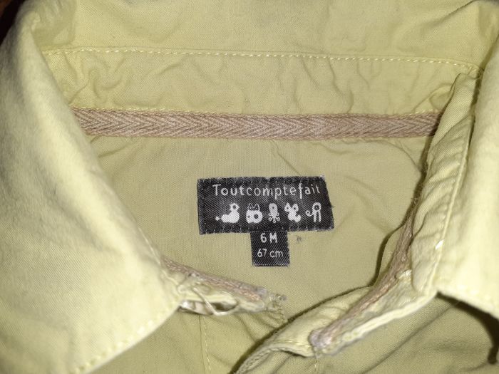 Jolie chemise à manches longues Taille : 6 mois Composition : 100% Coton Coloris : Vert anis Marque : Tout compte Fait Etat impeccable