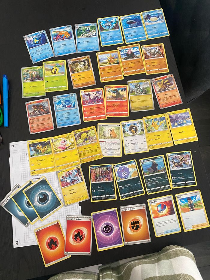 Lot de 46 cartes Pokémon Authentique, j’ai 4 anglaise mais elles sont authentique Très bon état doublon