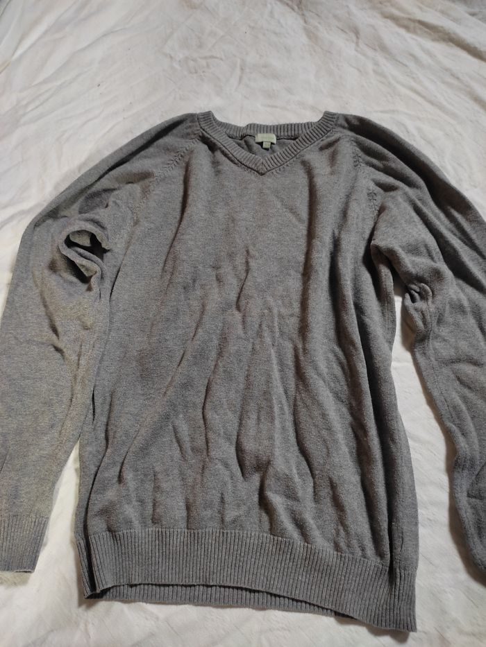 Pull gris col v - photo numéro 1