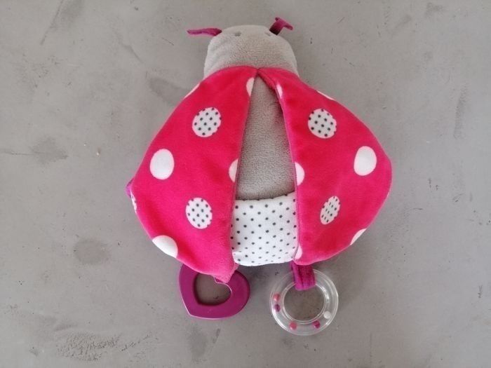 Doudou D activite Hochet Coccinelle rose gris blanc OBAIBI, comme neuf, jamais utilisé. N'hésitez pas à jeter un œil à mes autres annonces pour avoir un prix si plusieurs articles achetés.