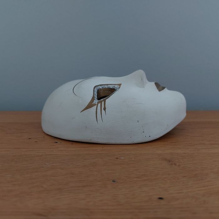 Masque de Venise mural 12 cm En résine, plâtre ou terre cuite je ne sais comment le distinguer ... Bon état