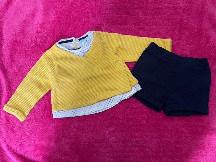 En très bon état. Composé d’un pull effet chemise et d’un short. #cindy210286taille12mois #cindy210286Obaïbi
