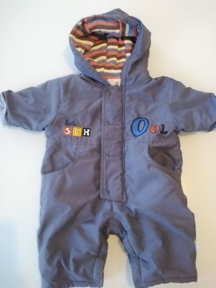 Jolie combinaison grise, mixte marque "Kiyiwatt", taille 6 mois, boutons pressions à l'entrejambe, fermeture éclair et boutons pressions sur le devant. Très bon état