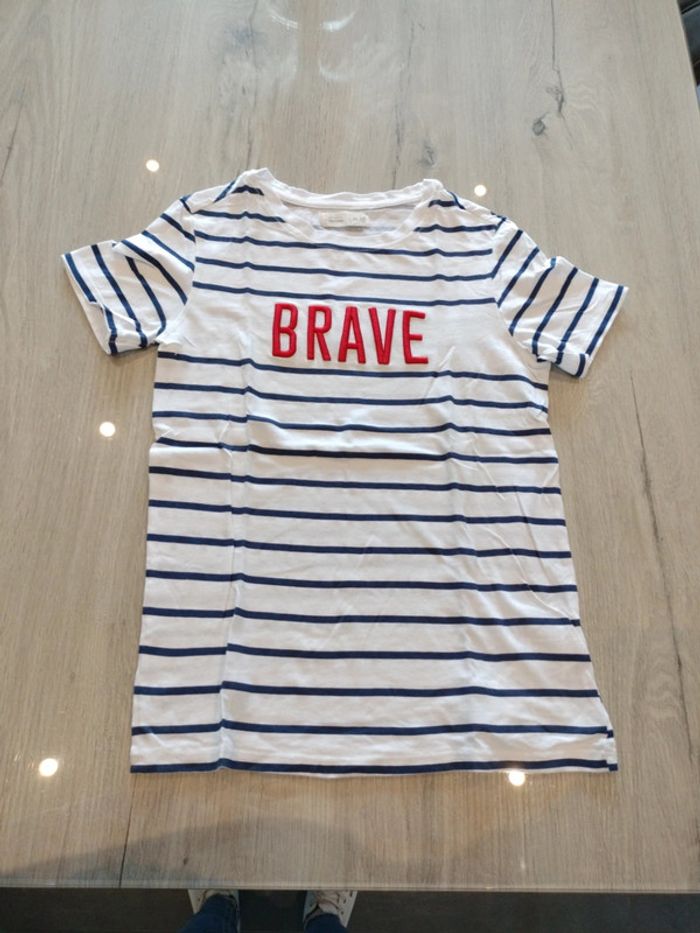 T shirt blanc ligne bleu brave en rouge #chloealsteen17fillexs