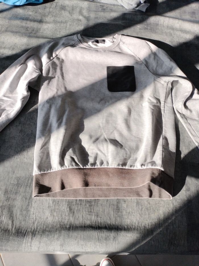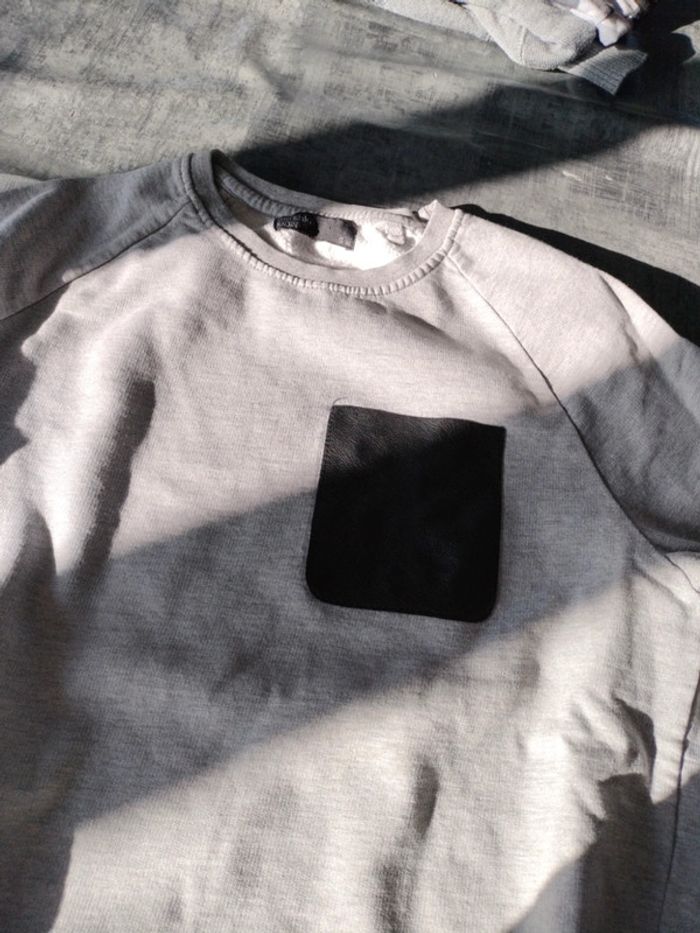 Pull gris avec poche noir - photo numéro 1