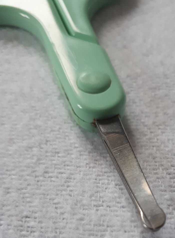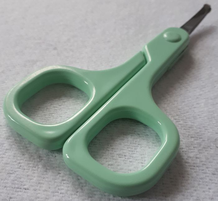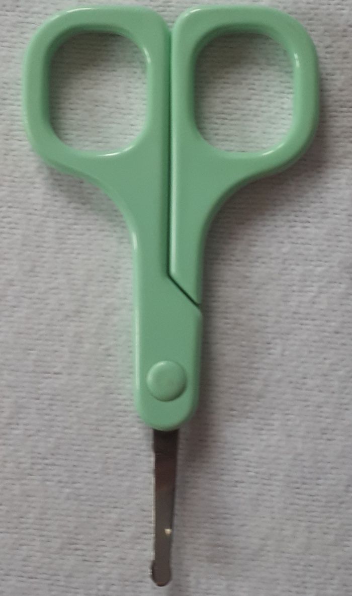 Vends 1 paire de ciseaux très pratiques pour couper les ongles de bébé sans risquer de le blesser grâce à leurs embouts arrondis. Doté d'un repose-doigt, ils assureront un confort d'utilisation et vous permettront d'effectuer une coupe propre et précise. Matières : Inox et plastique. Dimensions : l5,3 x H10 x P0.5 cm.