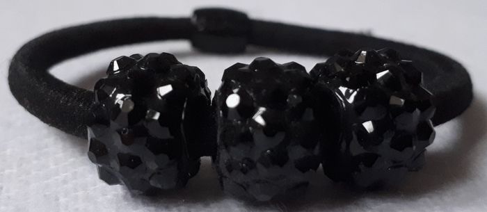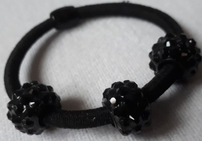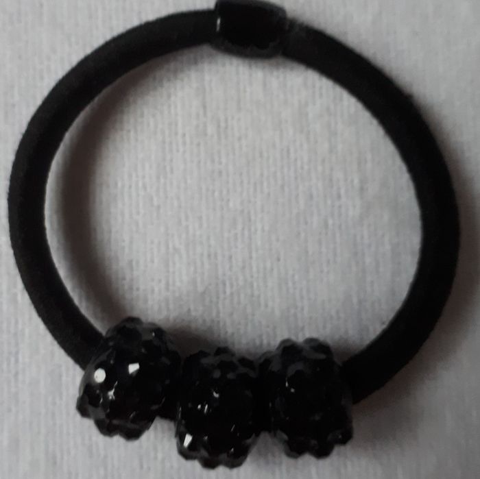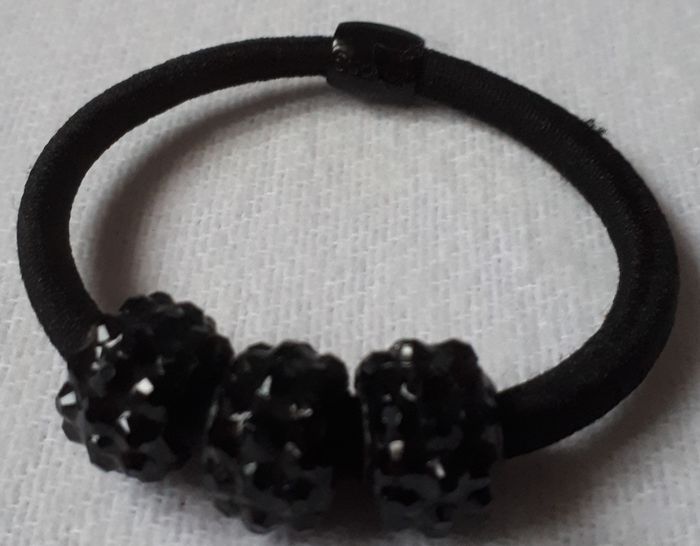 Vends élastique pour cheveux qui propose un sublime effet. Très facile à mettre, il se compose d'une part d'un élastique classique et de trois perles de couleur noir brillant.