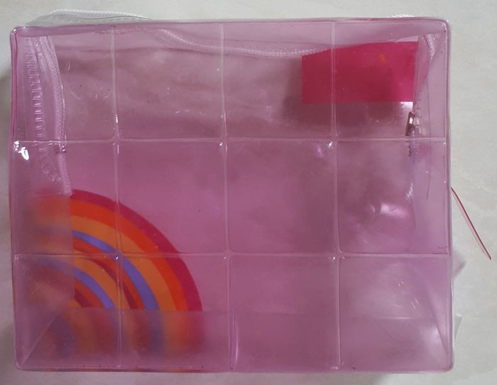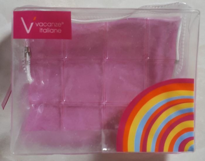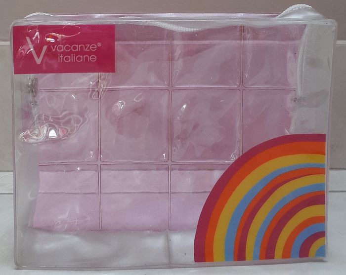 Vends une trousse de voyage transparente pour transporter vos produits de beauté (50 ml) tout en respectant les normes aériennes internationales. Elle vous fera gagner du temps et embarquez rapidement. Matériau : PVC imperméable résistant. Dimensions : L13.5 x l3.4 x H10 cm.