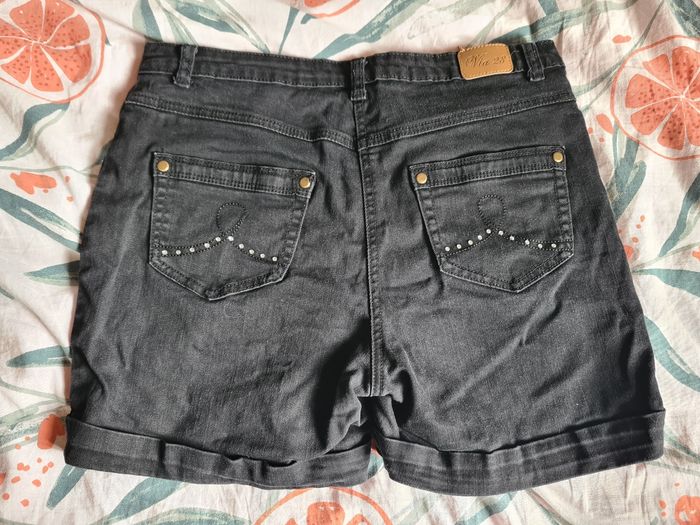 Short noir en jean Taille 40 Vita 28 Strass sur les poches, bouton et poches arrières
