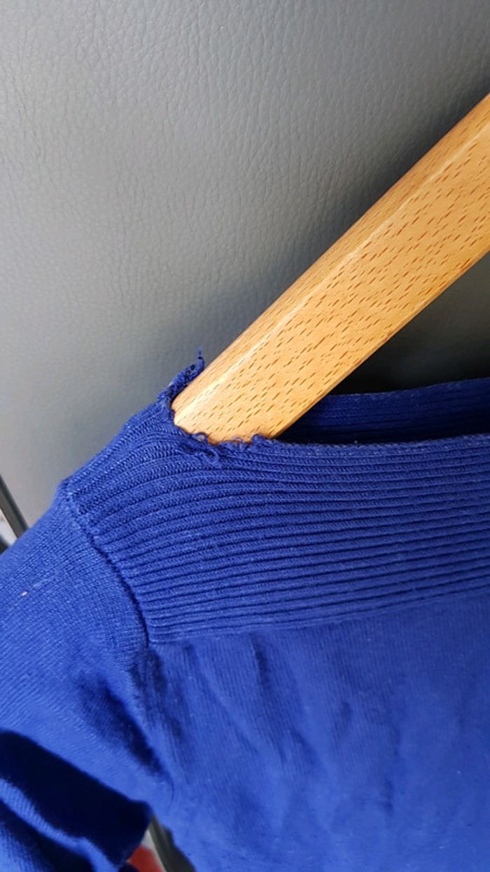 Bleu électrique Bon etat quelques bouloches Nécessiterait un point au niveau du col . Désolée pour l état, a force de brocantes et des visites à la maison, je ne prends plus le temps de tout plier ... Résultat froissage.. Ne t arrêtes pas la, profites en pour faire un tour dans mon dressing et profiter de réductions sur les lots et de frais de port groupés #mimie860_femmetailleunique