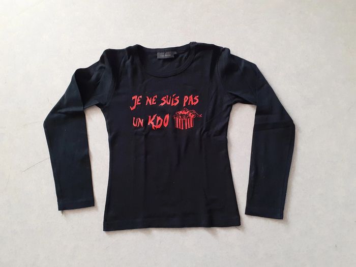 maillot manche longues, noir avec imprimé rouge « Je ne suis pas 1 kdo » de marque Kiabi Woman taille 14 ans