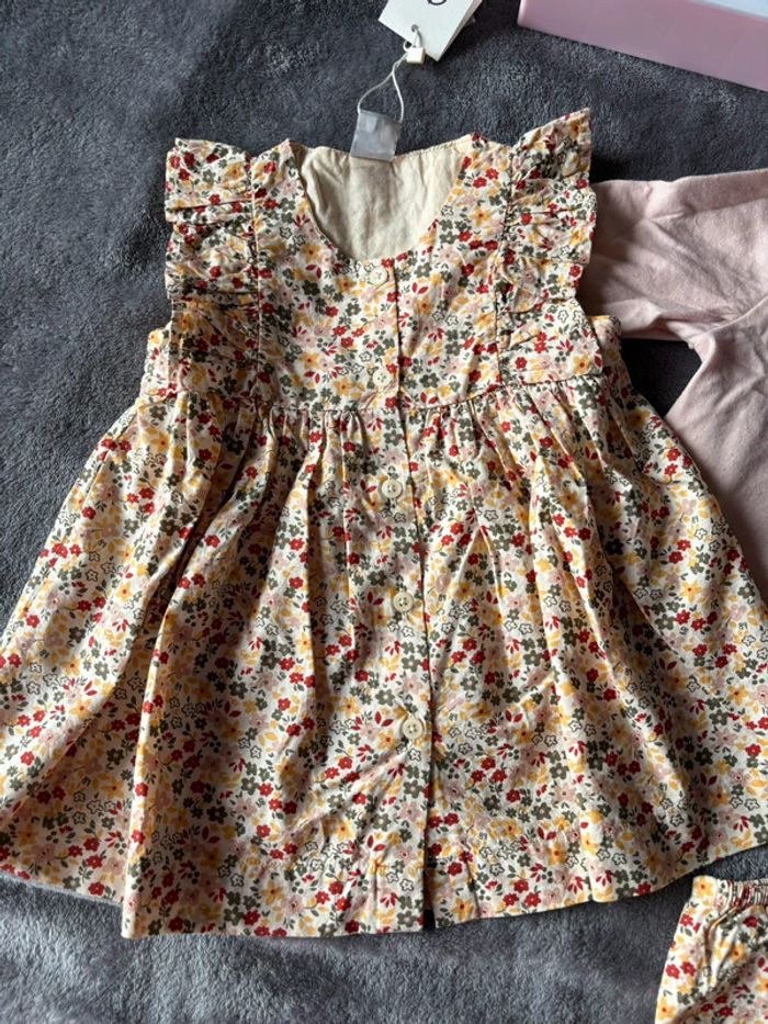ROBE EN POPELINE, UNE MATIÈRE LÉGÈRE, PARFAITE POUR LA PÉRIODE ESTIVALE. Très raffinée avec son imprimé fleuri, ses fronces et ses volants à l'emmanchure. Un bloomer dans la même matière vient compléter la silhouette et offre un look clef en main. Ouverture boutonnée au dos pour faciliter l'enfilage. Prix : 55€ CARDIGAN EN MOLLETON, UNE MATIÈRE SOUPLE ET AGRÉABLE POUR UN MAXIMUM DE CONFORT. Ouverture à boutons-pression sur toute la hauteur pour faciliter l'enfilage. Facile à associer avec toutes les tenues ! Prix : 30€ Ensemble à 85€ État : neuf avec étiquette ! 😍 Envoi rapide 📬 Tous les habits sont nettoyés avant l’envoi 😊 N’hésitez pas a faire un tour dans mon dressing pour profiter des réductions pour l’achat d’un lot 🌺