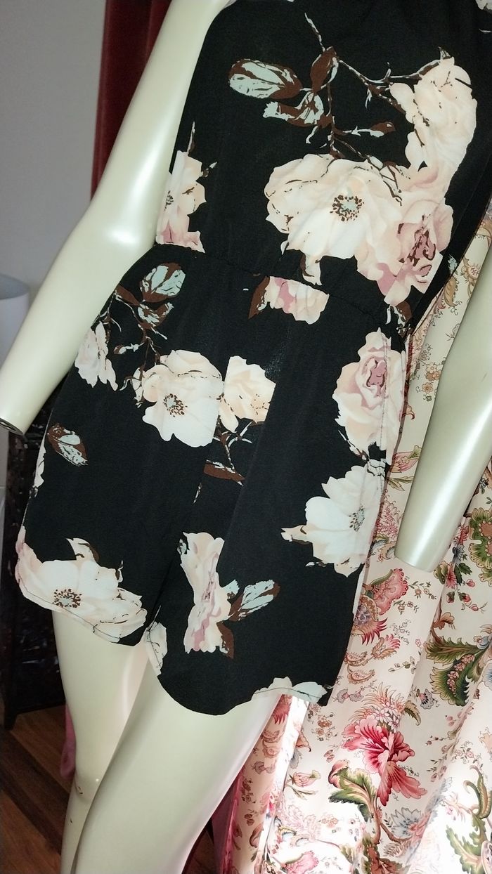 Combishort noir fleuri etat neuf taille S/M - photo numéro 1