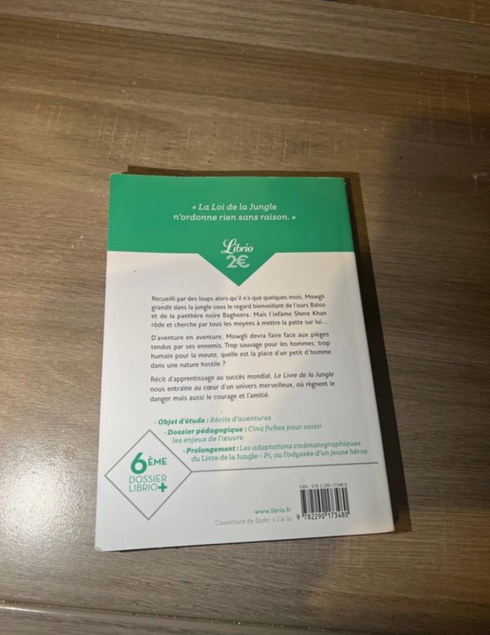 Le live de la jungle ( neuf sans etiquette ) Sur le livre il y a écrit 6eme ce livre est pour les 6eme donc ceux qui ont 11 12 ans