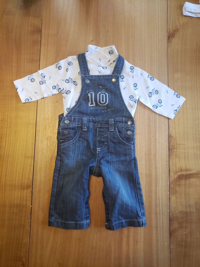 Ensemble col roulé et salopette 3 mois - photo numéro 1