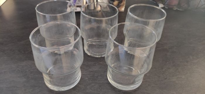 5 verres de 50 Cl en très bon état juste un peu ternis par le lave-vaisselle