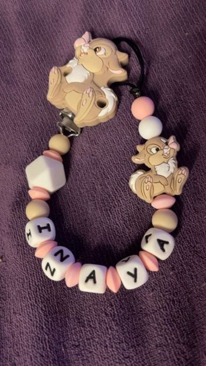 Attache tétine personnalisé en silicone ou en bois au souhait de l’acheteur . Personnalisable au choix de l’acheteur que ce soit la couleur comme le prénom ou le thème . Le fil est doublé pour plus de sécurité tout le long de l’attache tétine. N’hésitez pas à me demander et regarder mon dressing. Une photo vous sera envoyée avant l’expédition pour vous ayez un aperçu du rendu. Tous les produits sont réalisés avec du materiel spécial conçu aux bébés , enfants.
