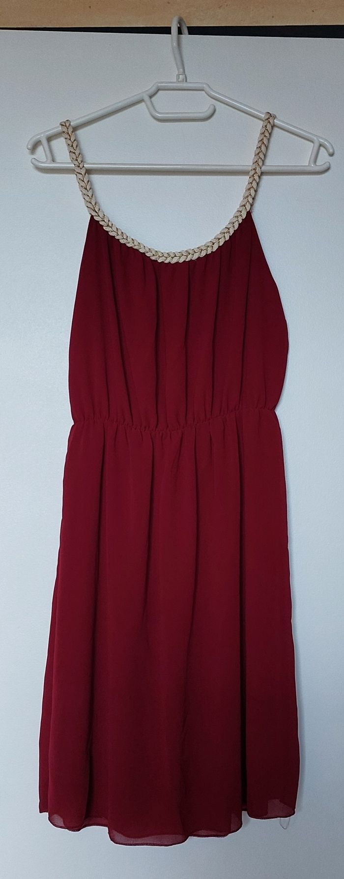 Robe fluide avec bretelles Elle a une doublure Taille M Fabriqué en Italie Couleur bordeaux 65% polyester, 35% viscose Lavable à 30°C Très bon état